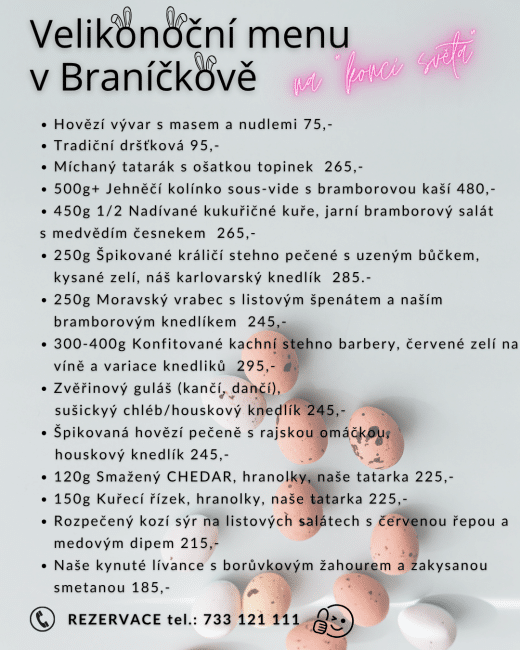 Otevírací doba restaurace v Braníčkově během letošních Velikonoc